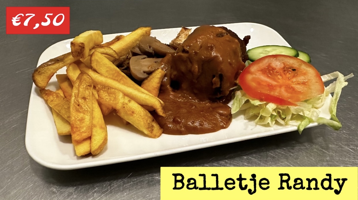 Gehaktbal uit de jus, ambachtelijke friet & salade.