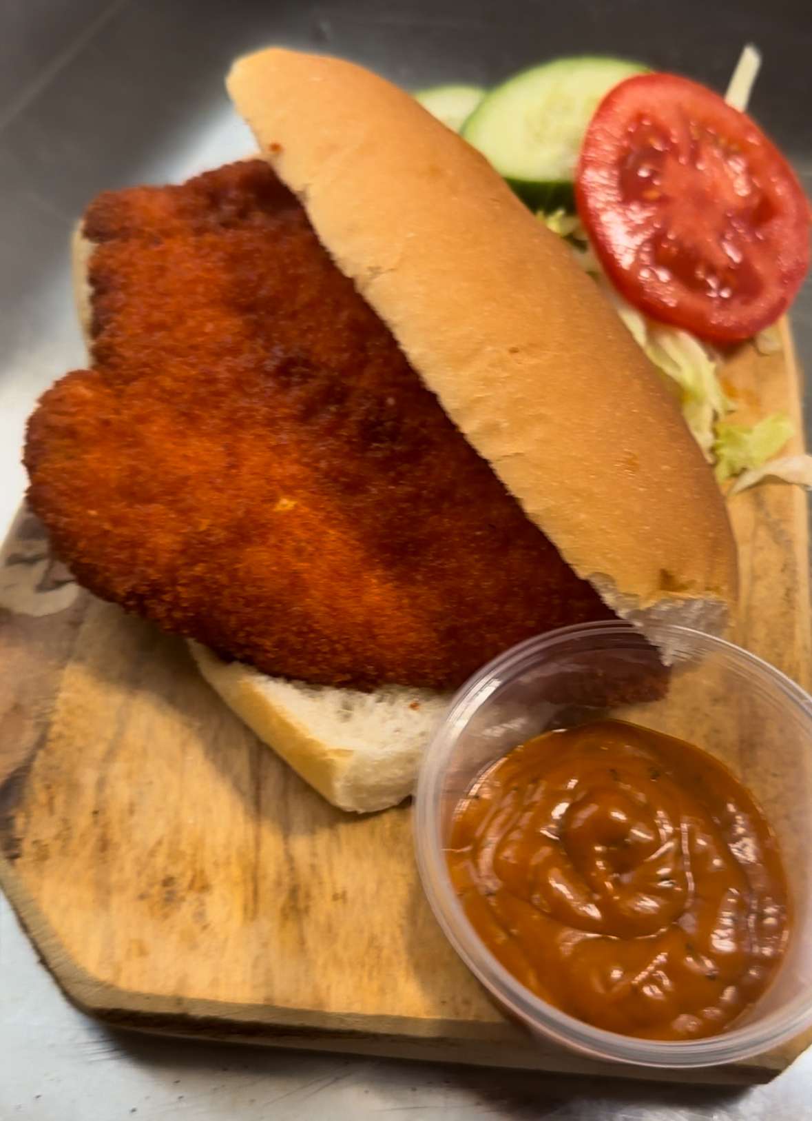Broodje Kipschnitsel met Katjang saus (of een sausje naar keuze)