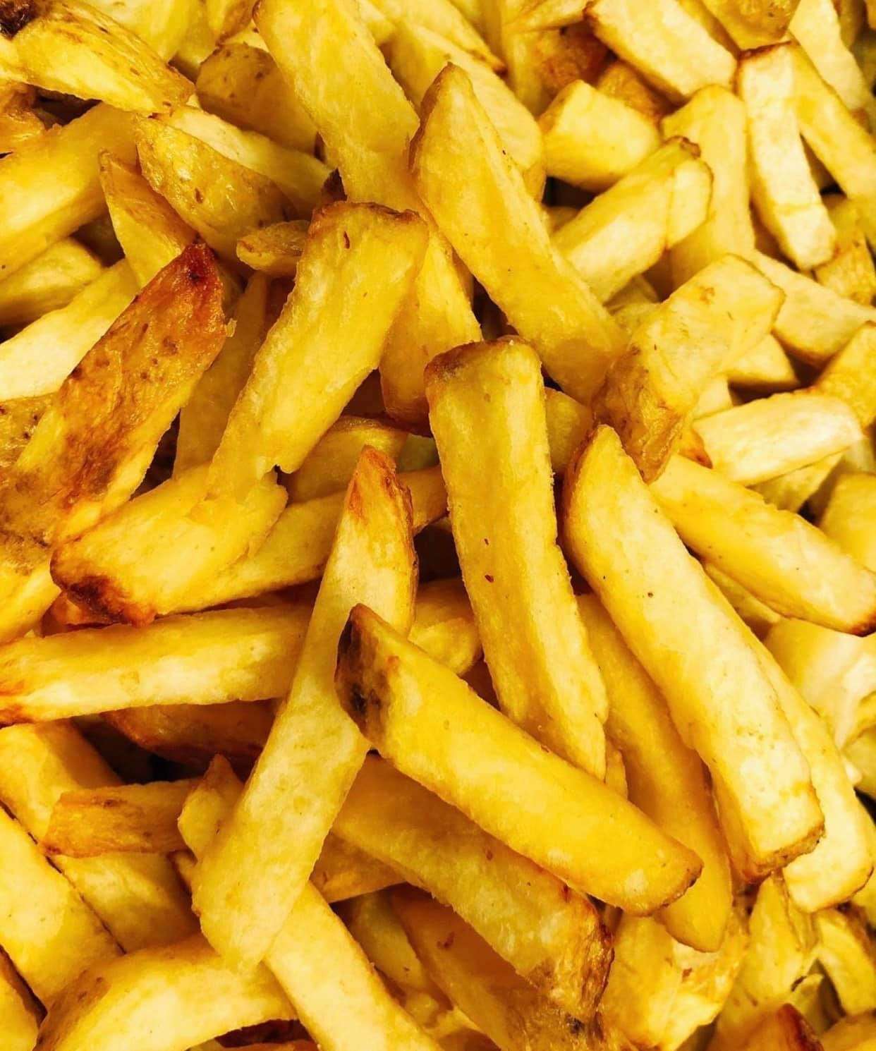 Vers gesneden ambachtelijke friet, gebakken in 100% plantaardige olie.