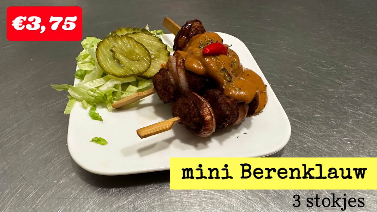 Berenklauw met satésaus,ambachtelijke friet & salade.
